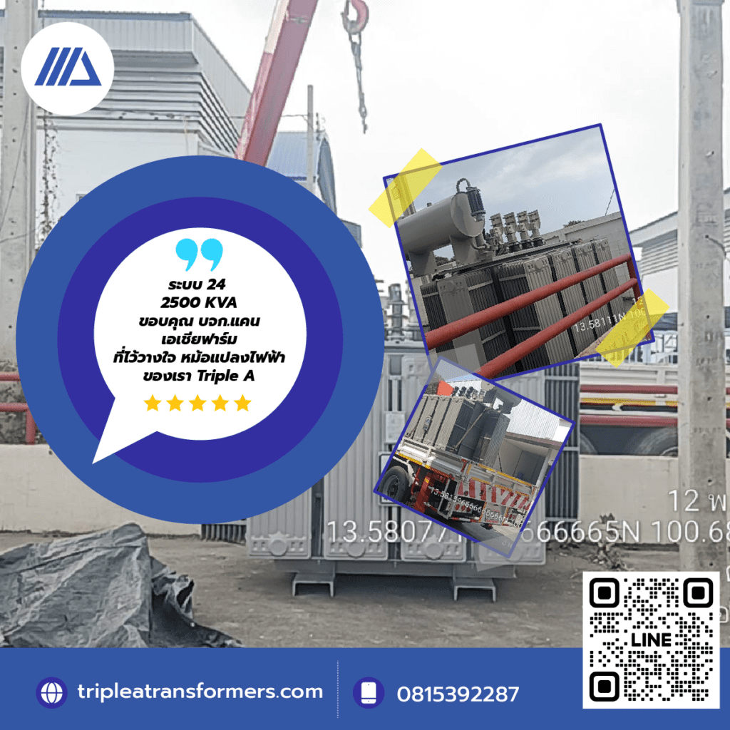 ผลงานจำหน่ายหม้อแปลงไฟฟ้าแรงสูงและบริการ PM หม้อแปลงไฟฟ้าโดยทีมวิศวกรมืออาชีพทั่วประเทศ ผลงานที่ผ่านมาTRIPLE A TRANSFORMERS ภูมิใจที่ได้เป็นผู้นำด้านการจำหน่ายและจัดส่งหม้อแปลงไฟฟ้าแรงสูงให้กับลูกค้าทั่วประเทศ ทั้งโครงการภาครัฐ ภาคเอกชน และโรงงานอุตสาหกรรมขนาดใหญ่ ทุกเครื่องผ่านการทดสอบคุณภาพตามมาตรฐานการไฟฟ้าส่วนภูมิภาค พร้อมบริการหลังการขายครบวงจร โดยเฉพาะบริการรับบำรุงรักษาหม้อแปลงไฟฟ้า (PM หม้อแปลงไฟฟ้า) ที่ช่วยตรวจสอบสภาพและบำรุงรักษาเชิงป้องกันอย่างมืออาชีพ เพื่อให้หม้อแปลงของลูกค้าทำงานได้เต็มประสิทธิภาพ ปลอดภัย และมีอายุการใช้งานยาวนาน ผลงานประจำปี 2026 ต้องการหม้อแปลงไฟฟ้าคุณภาพสูงที่ได้มาตรฐาน พร้อมบริการดูแลครบวงจรหรือไม่? ติดต่อทีมงานผู้เชี่ยวชาญของเราได้เลยวันนี้ เพื่อรับคำปรึกษาฟรีและเสนอราคาที่เหมาะกับโครงการของคุณ! Facebook Instagram Line Tiktok Youtube ที่อยู่: 67/3 หมู่ที่ 7 จังหวัด นครปฐม Email: tripleatransformers168@gmail.com เวลาทำการ: จันทร์ - ศุกร์ เวลา 8.00 - 17.00